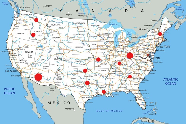 States we cannot sell or ship to due to State Restrictions.