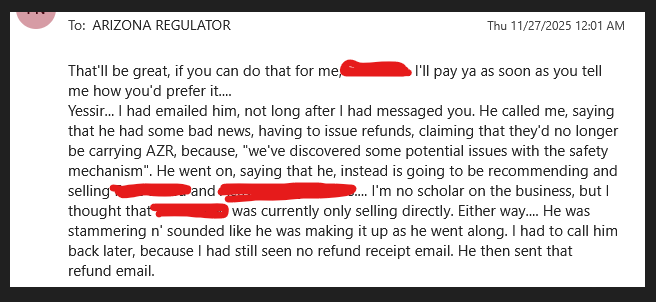 If someone claims to be an ARIZONA REGULATOR ™ Dealer or claims to be able to provide ARIZONA REGULATOR ™ Products or Intentionally Created Compatible Products and is not listed here on our site document it and send thier info along with the documentation to us so we can proceed with Legal Action against them for Infringing on our ARIZONA REGULATOR ™ Authorized Dealer Territory(s) and for Unauthorized Use of ARIZONA REGULATOR ™ IP.
