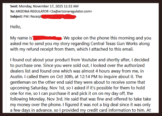 All Authorized Dealers are able to post on whatever platform to let thier people know they have the ARIZONA REGULATOR on hand for cash and carry. Those are all Grass Roots Guys that are strictly cash and carry they do not do click and buy on the interweb.