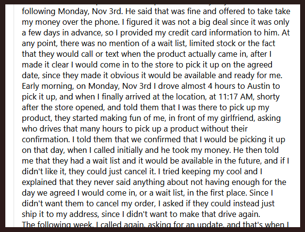 Reason : Failure to offer cash and carry at the location by means of Unauthorized Preselling/Backordering phone in orders to ship and accepting money from Customers for Unauthorized Preselling/Backordering when they had no stock on hand to provide to the Customer.